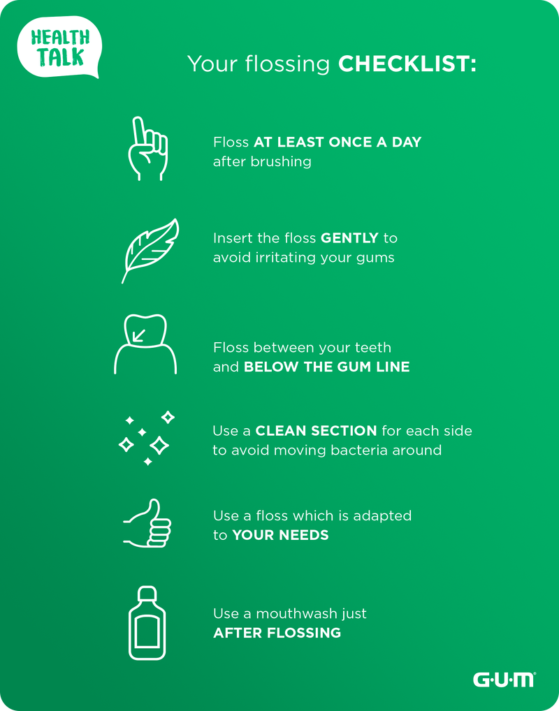 Plaque is soft so it can be removed mechanically using different tools such as floss. Flossing is particularly suited to people with tight interdental spaces and good dexterity. Remember that plaque tends to build up below the gum line as well as between teeth so always make sure you floss both areas daily.